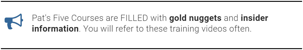 You get all FIVE of Pat's Courses, with OVER 8 HOURS OF TRAINING